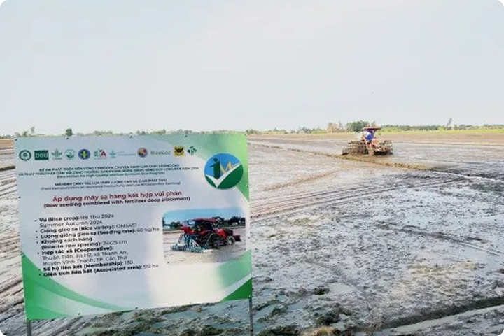 The Mekong Delta is Vietnam’s main rice production region with a stable rice output of 24 – 25 million tons/year, accounting for over 50% of the country’s rice output and 90% of its rice exports. Previously, the average amount of rice seeds sown by farmers in the Mekong Delta was very large, around 100 – 150 kg/ha. Participating in the field of 1 million hectares of high-quality rice, reducing emissions by applying mechanized row sowing helps reduce the amount of seeds sown to 60 kg/ha, reduce the amount of fertilizer and pesticides, reduce lodging and post-harvest losses.