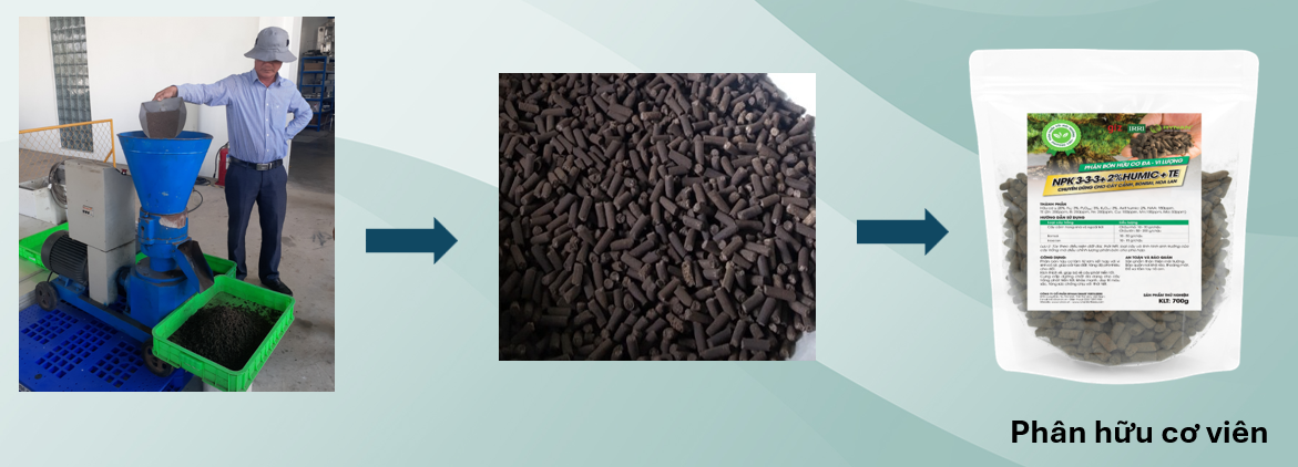 Thành phẩm sau ủ được nén ép thành dạng phân hữu cơ viên, tiện lợi trong việc sử dụng bón cho cây trồng